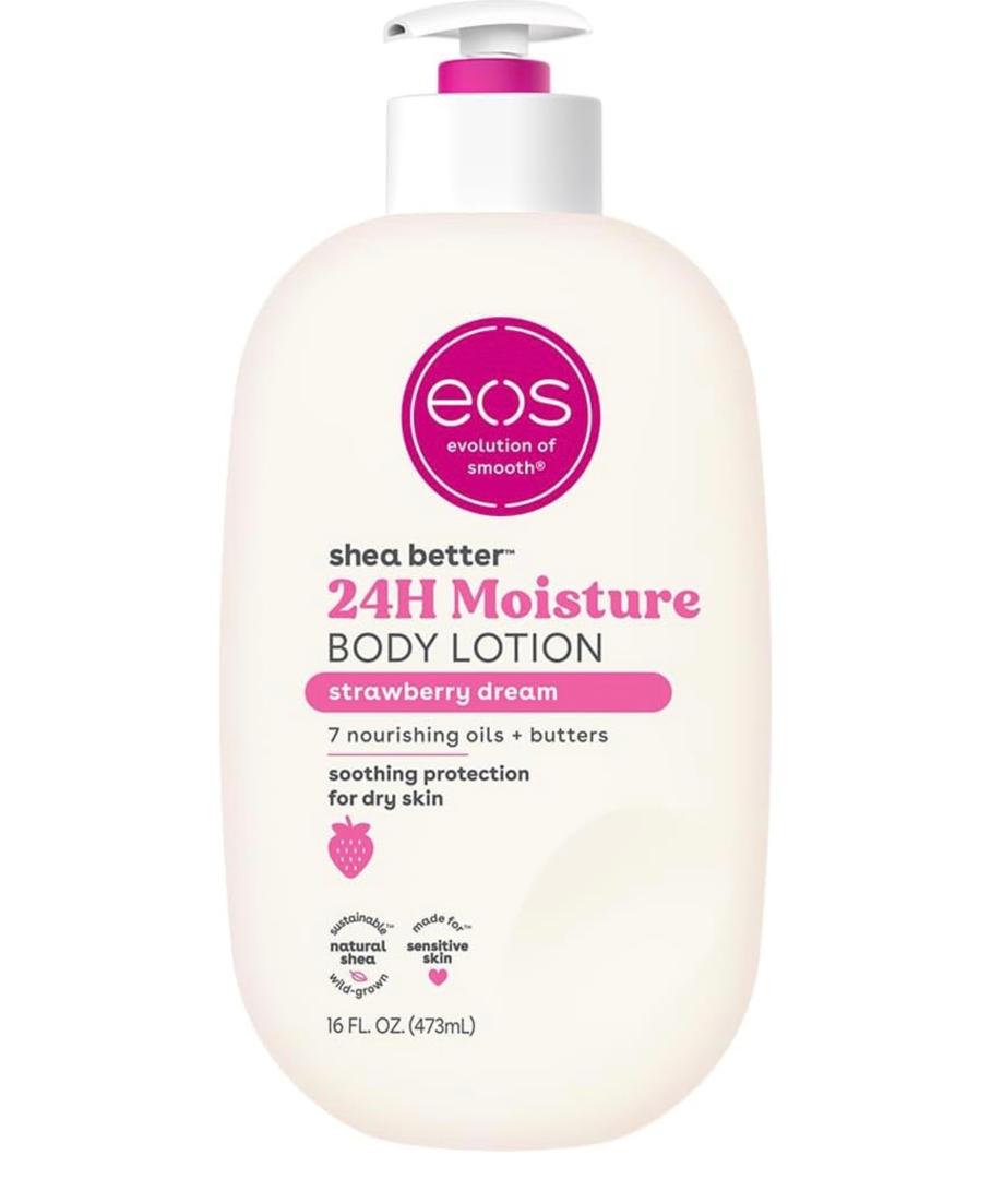 - eos STRAWBERRY DREAM BODY LOTION: Liberally apply eos lotion to just-cleaned skin - we'll do the rest. Pro tip: Layer this with your favorite fragrance for an enhanced experience